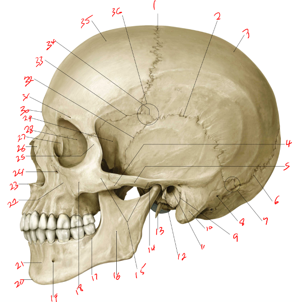 The cranium (skull) is the skeletal structure of the head that supports the face and protects the brain.